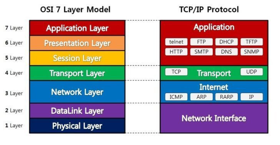 1. OSI 7 계층이란? OSI 7 계층은 네트워크에서 통신이 일어나는 과정을 7단계로 나눈 것을 말한다. 1.1 OSI 7 계층을 나눈이유는? 계층을 나눈 이유는 통신이 일어나는 과정이 단계별로 파악할 수 있